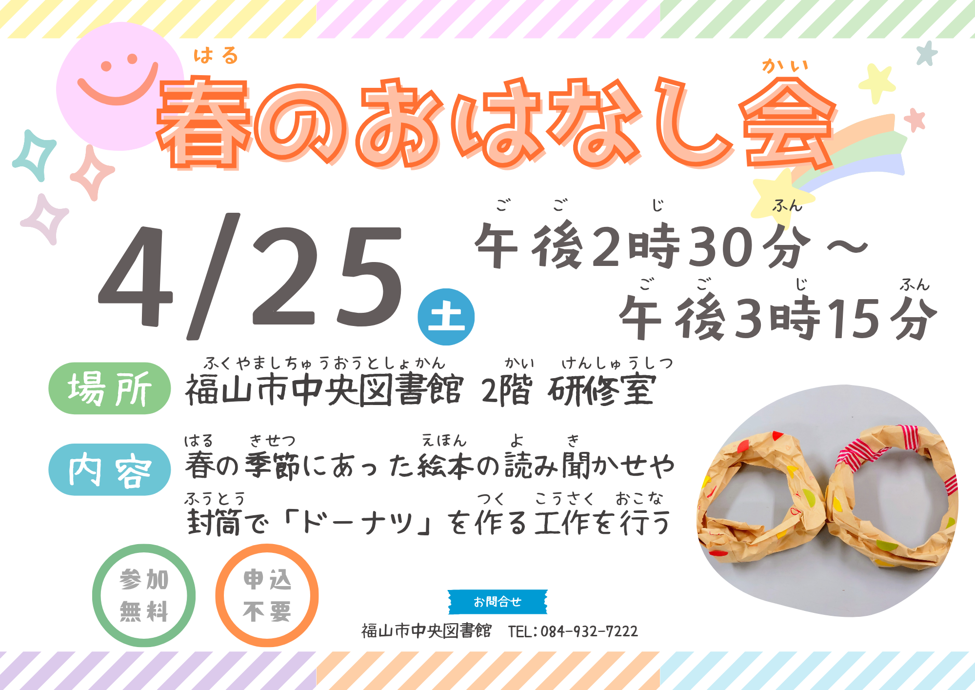 福山市中央図書館で、「春のおはなし会」を行います。
